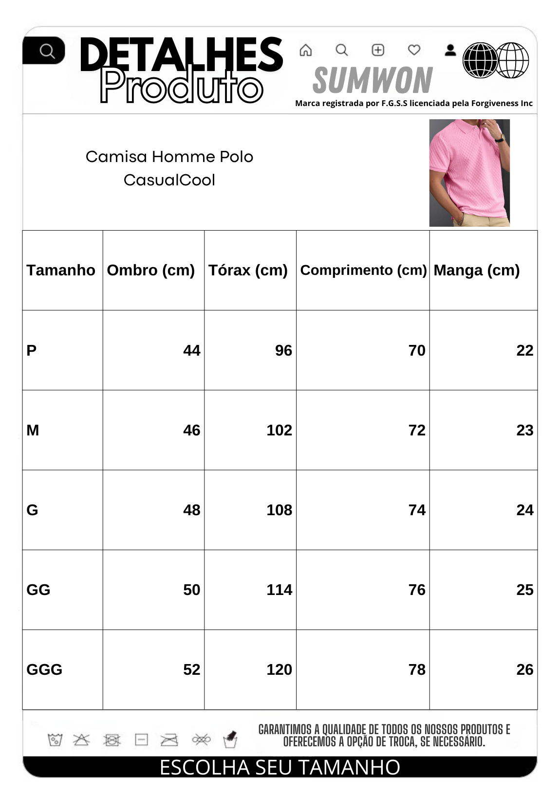 - Tecido Leve e Confortável: Proporciona frescor e excelente caimento.