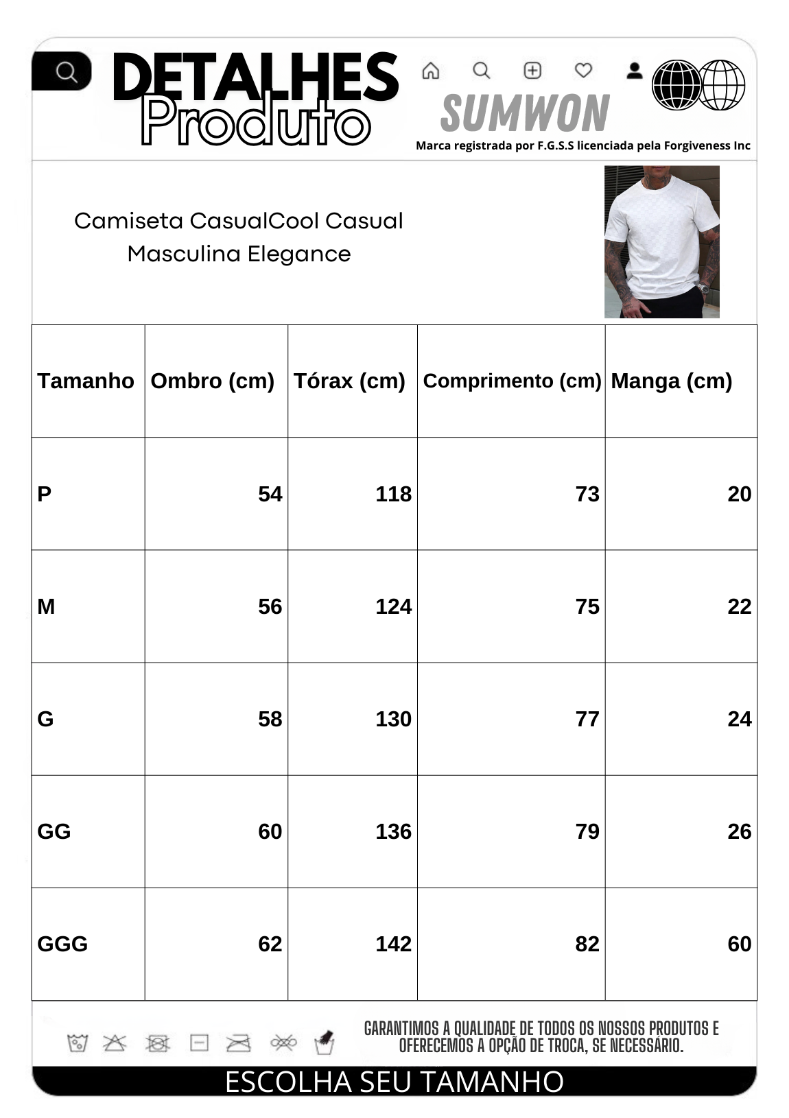 - Conforto Premium: Tecido leve e respirável, proporcionando bem-estar o dia todo.