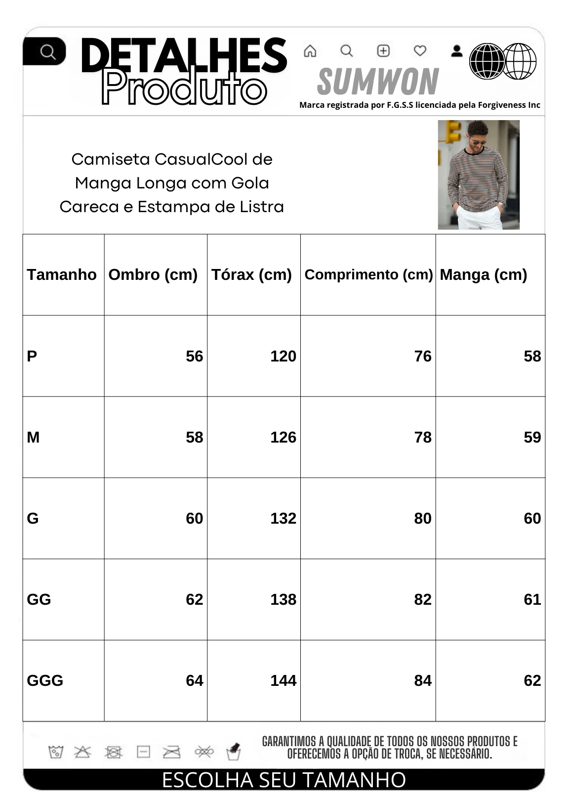 A Camiseta CasualCool de Manga Longa com Gola Careca e Estampa de Listra é uma peça essencial para quem valoriza elegância e conforto no dia a dia.