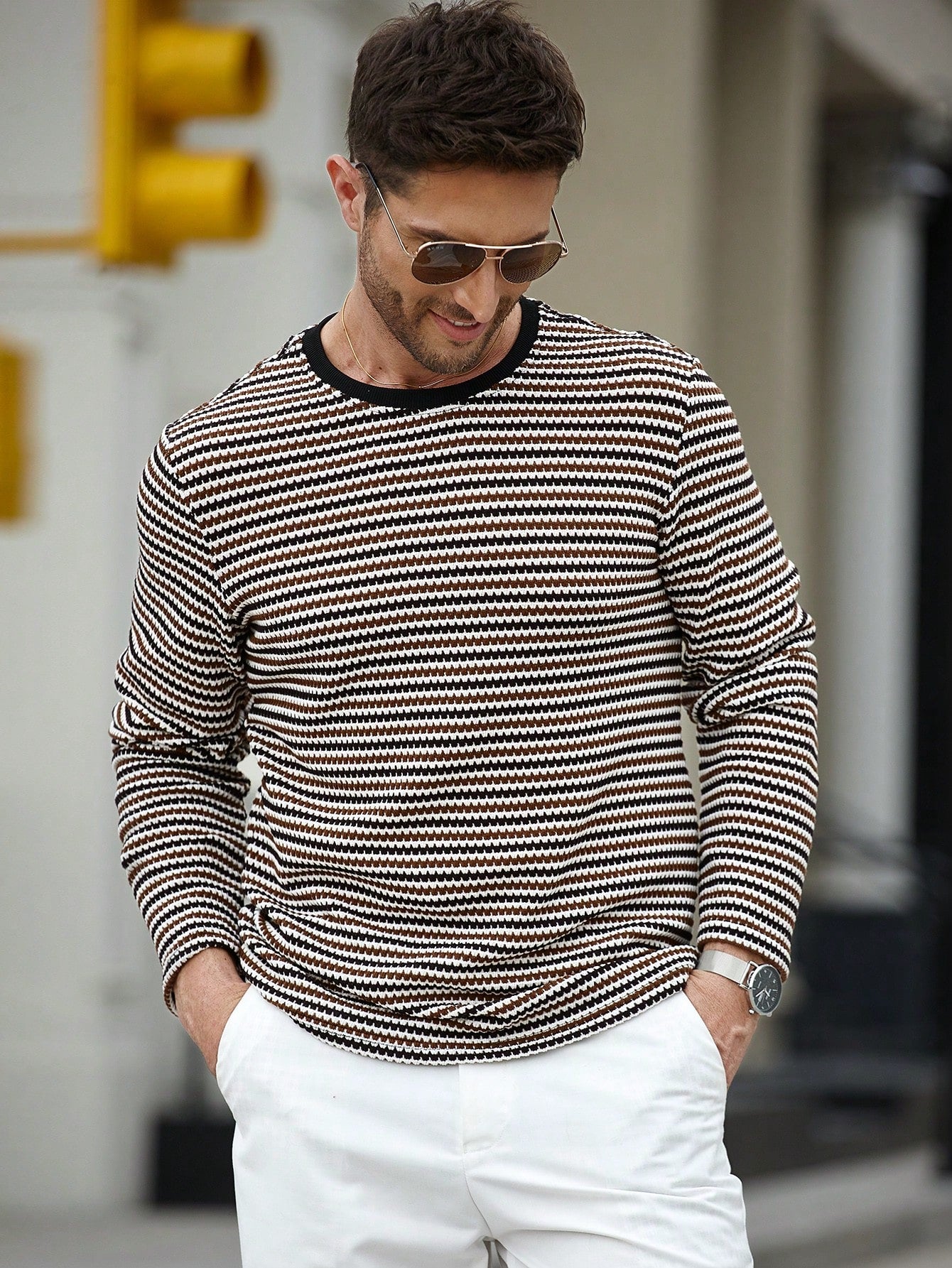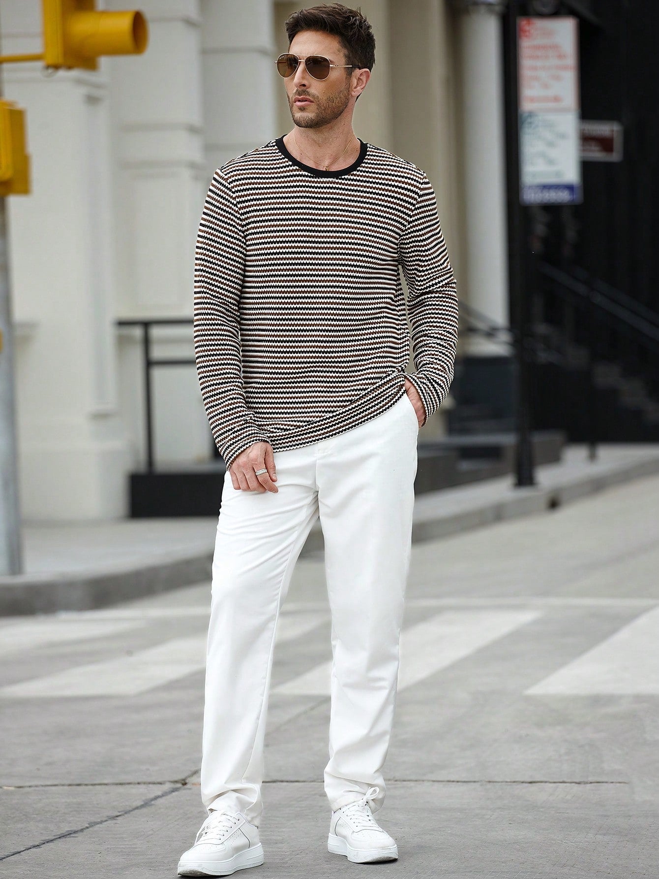 A Camiseta CasualCool de Manga Longa com Gola Careca e Estampa de Listra é a escolha perfeita para quem busca um visual equilibrado entre o clássico e o contemporâneo. Com um design versátil e detalhes marcantes, essa peça eleva qualquer composição com sofisticação e conforto.