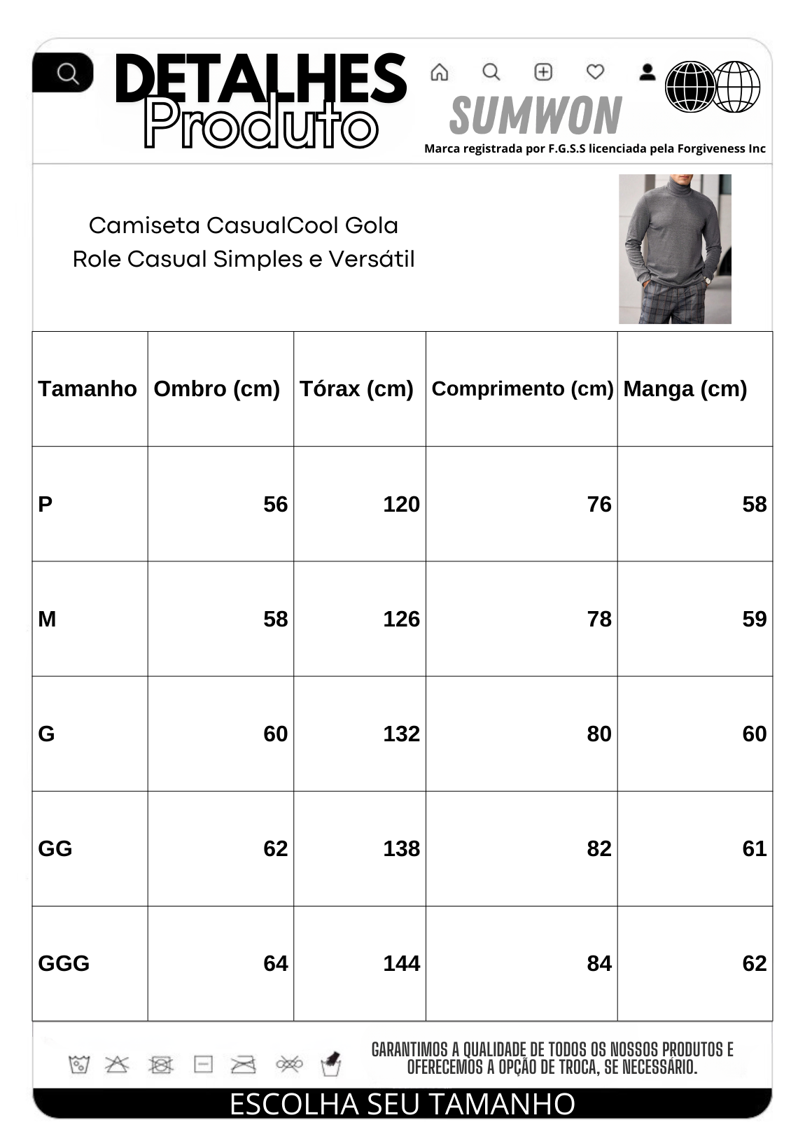 - Tecido Confortável: Material premium que garante um toque suave na pele.