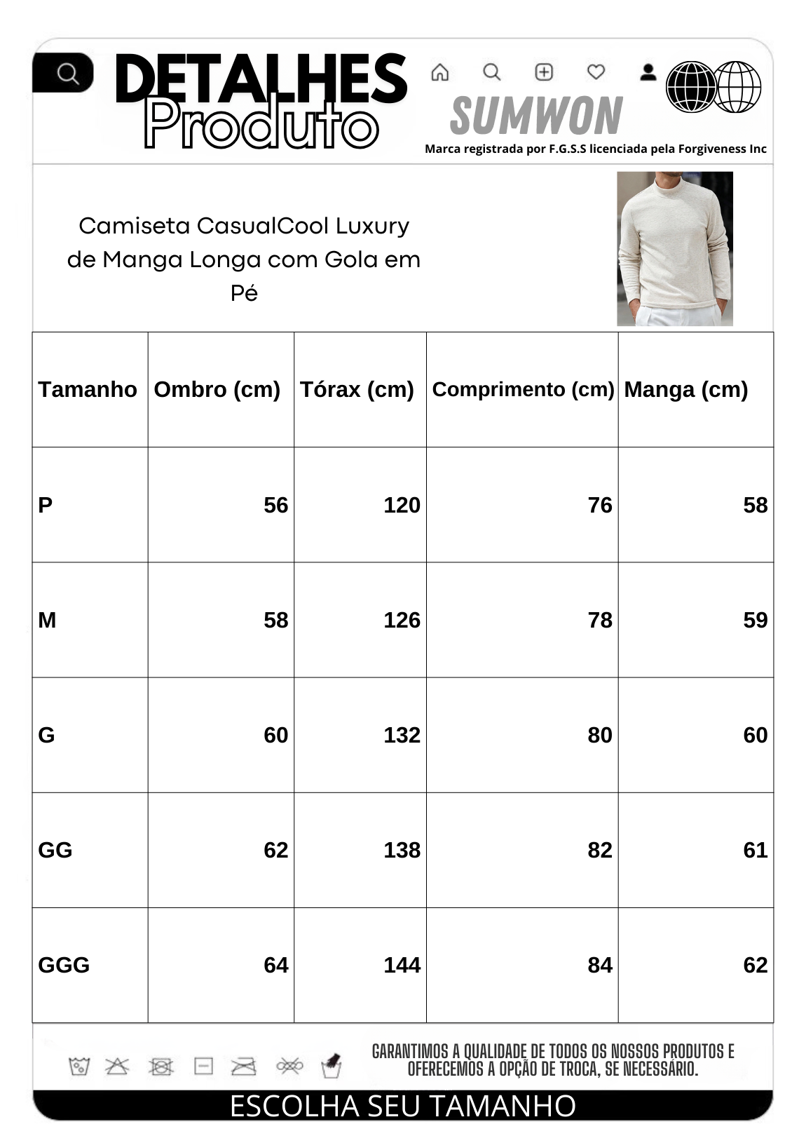 Camiseta CasualCool Luxury de Manga Longa com Gola em Pé – Estilo e Sofisticação em Cada Detalhe