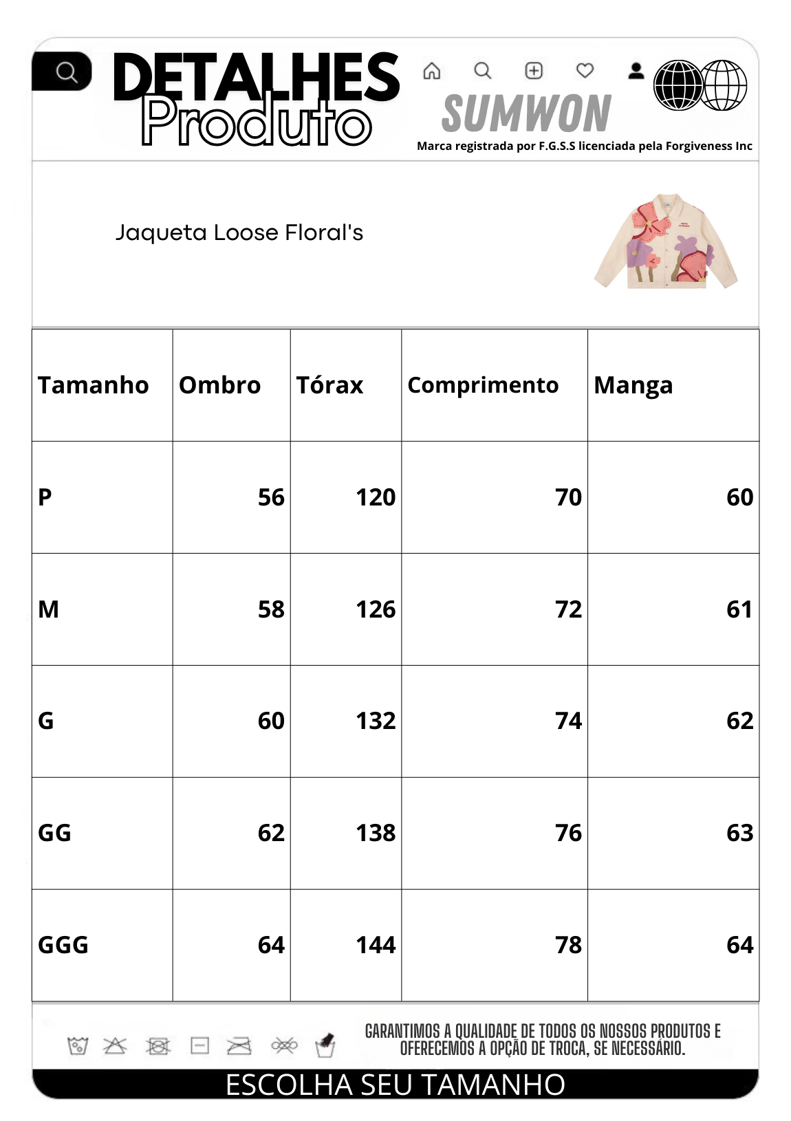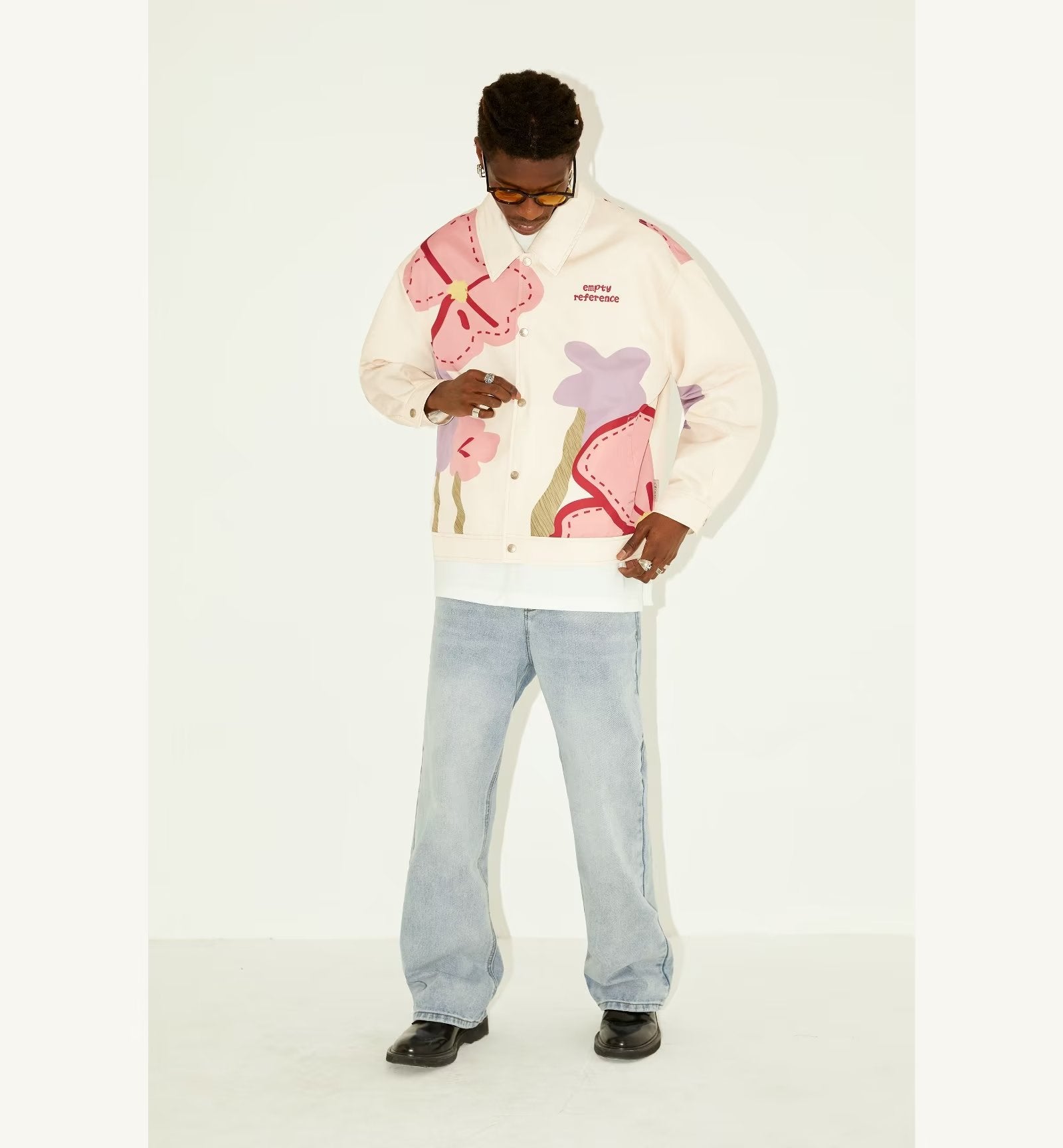 Combine-a com jeans claros e tênis brancos para um look casual e fresco, ou com calças skinny e sandálias para um estilo mais sofisticado. Seja para um passeio no parque ou um encontro casual, a Jaqueta Loose Floral's é a escolha ideal para destacar seu visual com elegância e descontração.