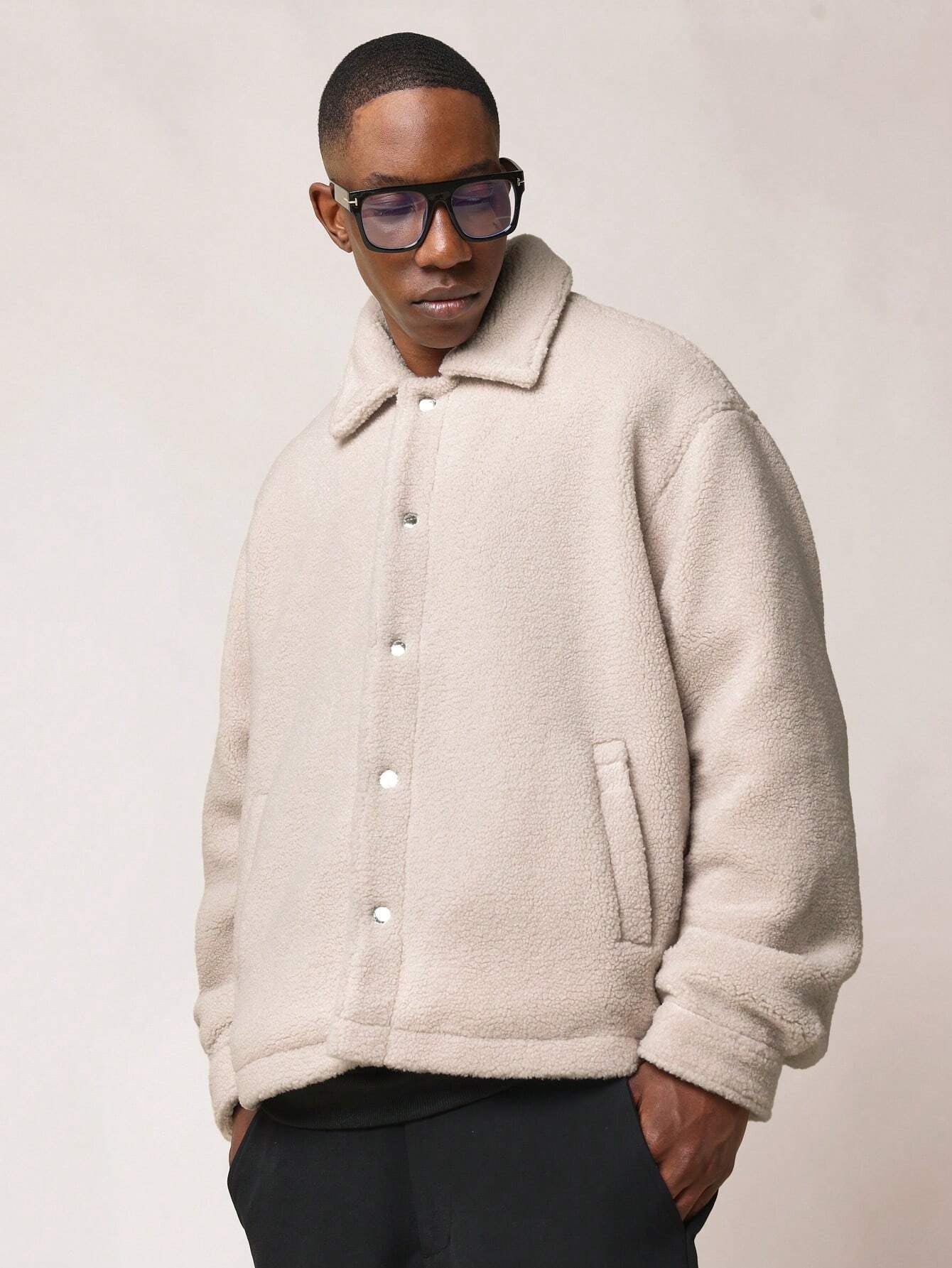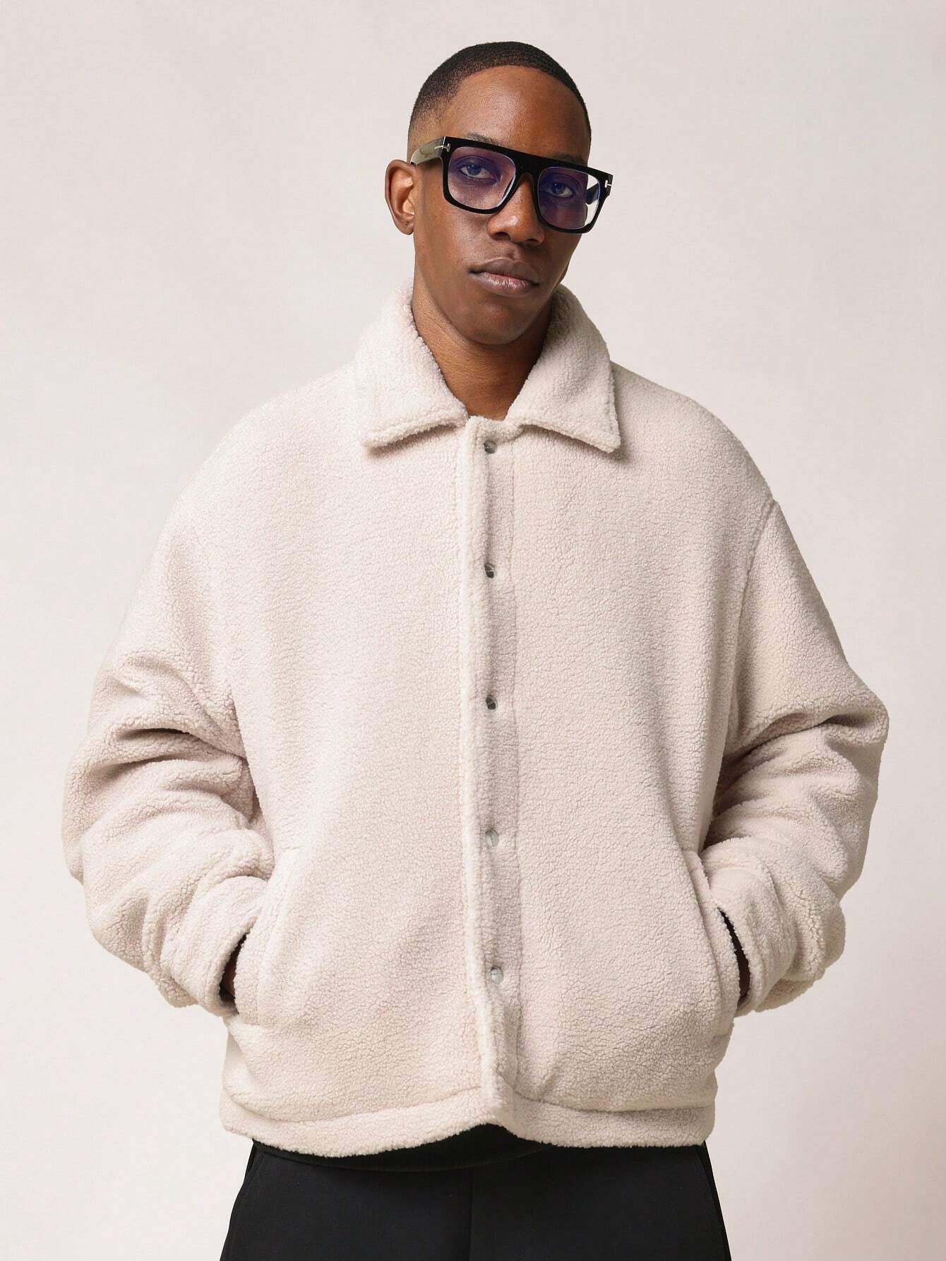 Jaqueta SUMWON Caixa Abotoada – Estilo Atemporal em Tecido Borg