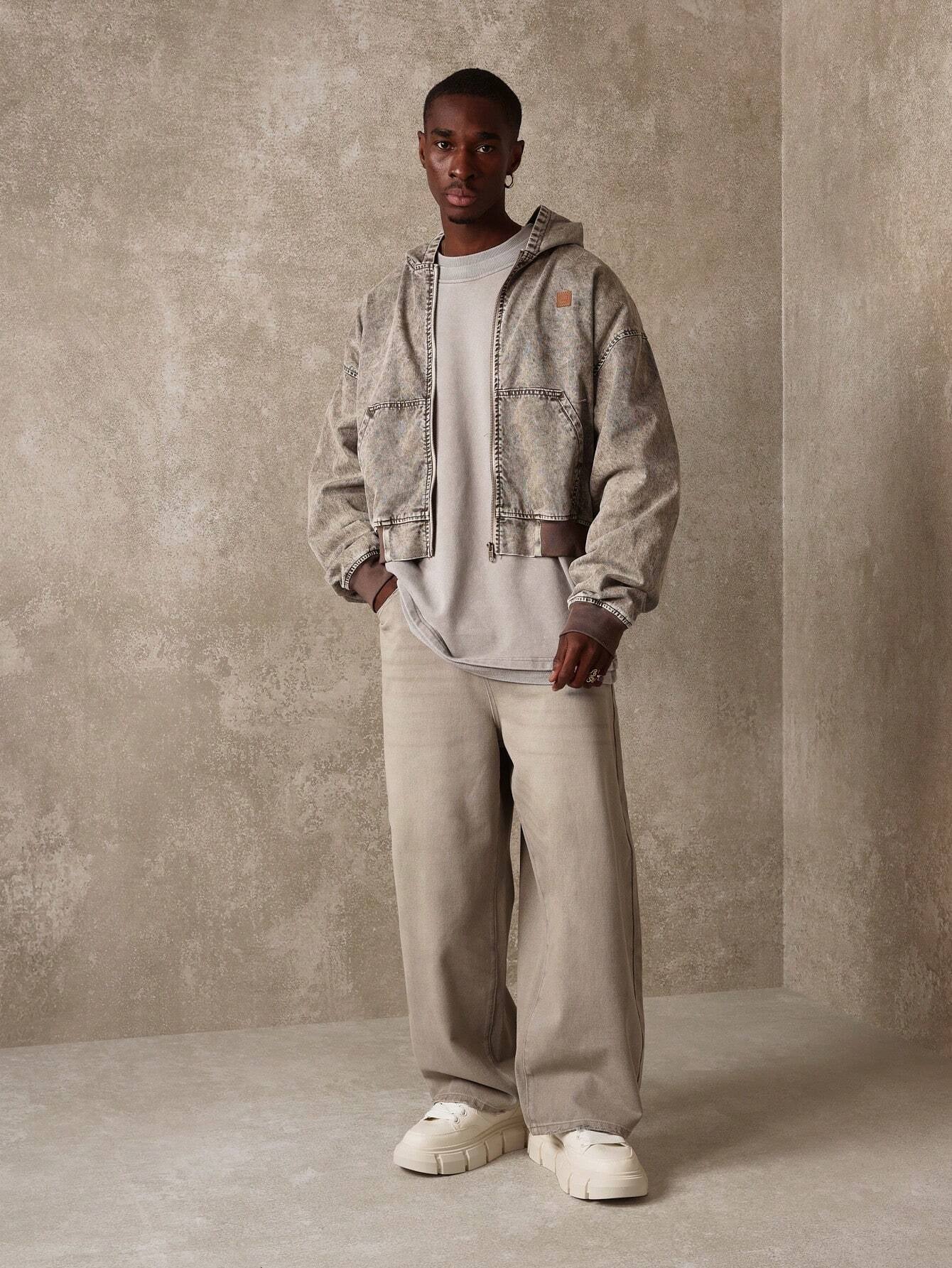Modelagem cropped masculina, unissex, com caimento solto na cintura