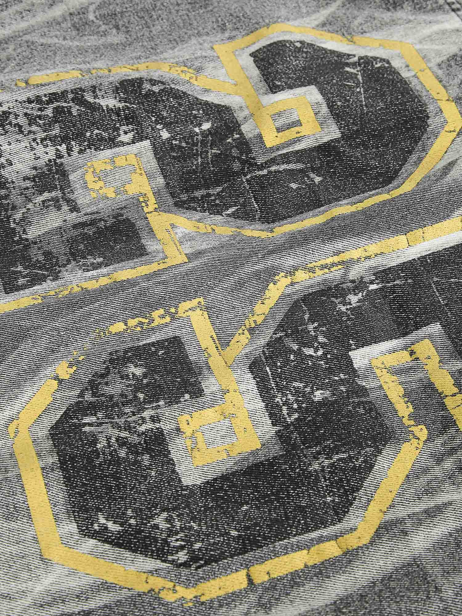 Thesupermade Hip-hop Distressed Washed Printed Denim Jacket - 2239