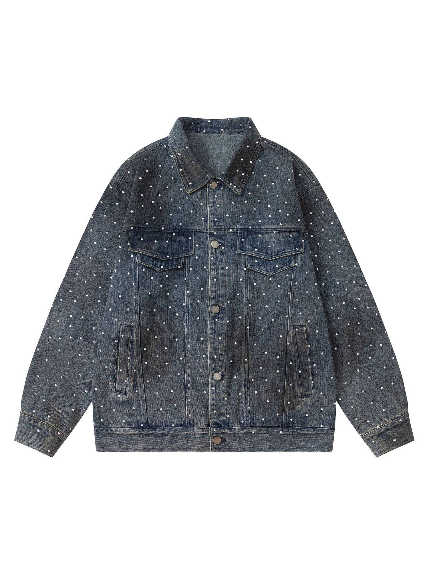 Thesupermade Hip-hop Beaded Washed Denim Jacket - 2264