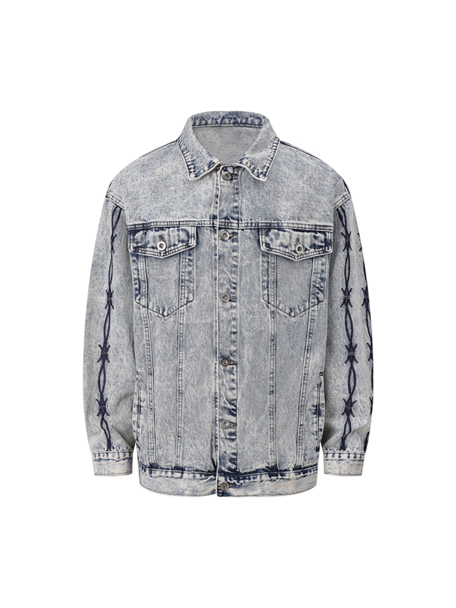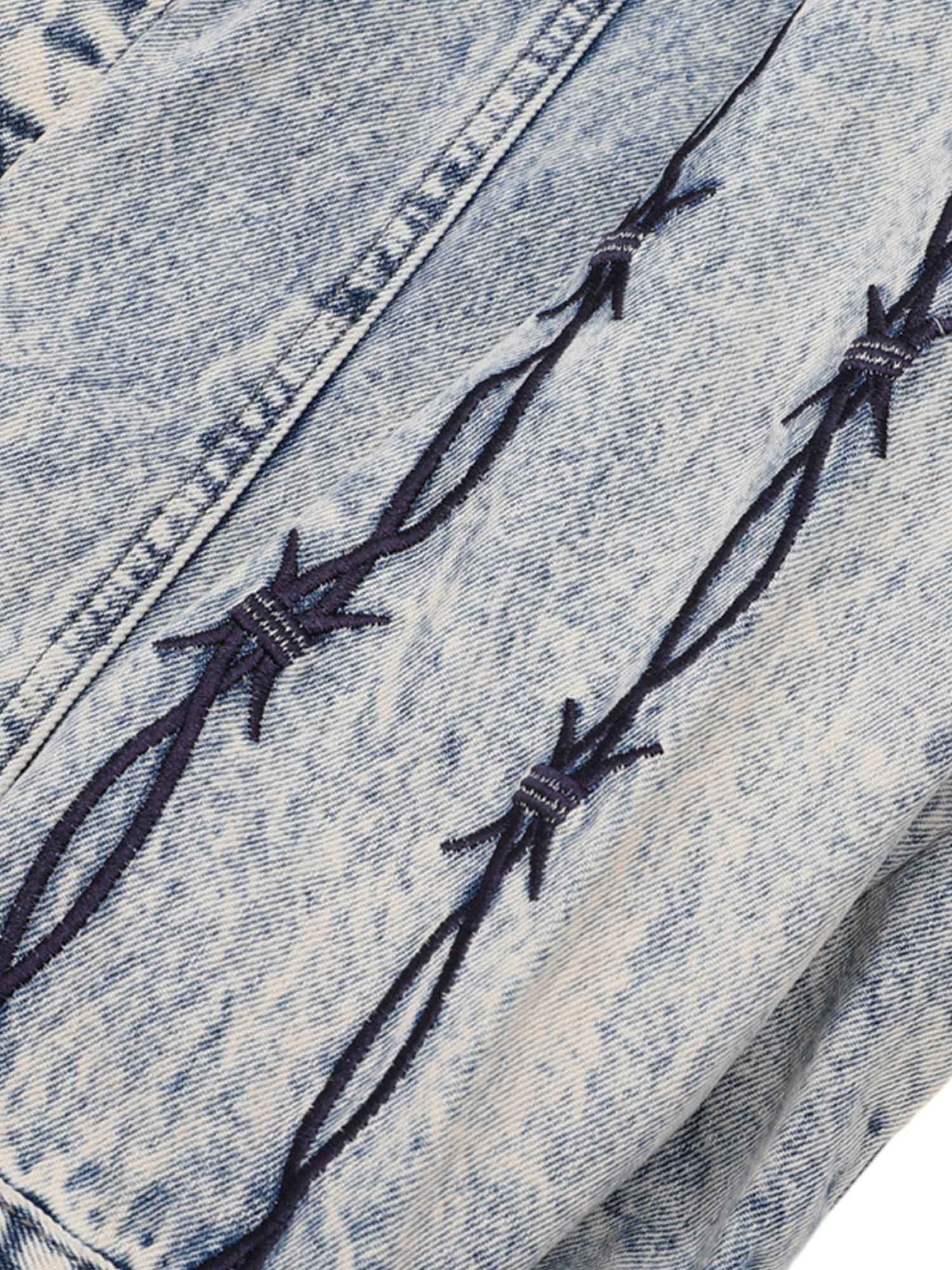 • Detail Features: Button Closure, Chest Pockets, Distressed Design