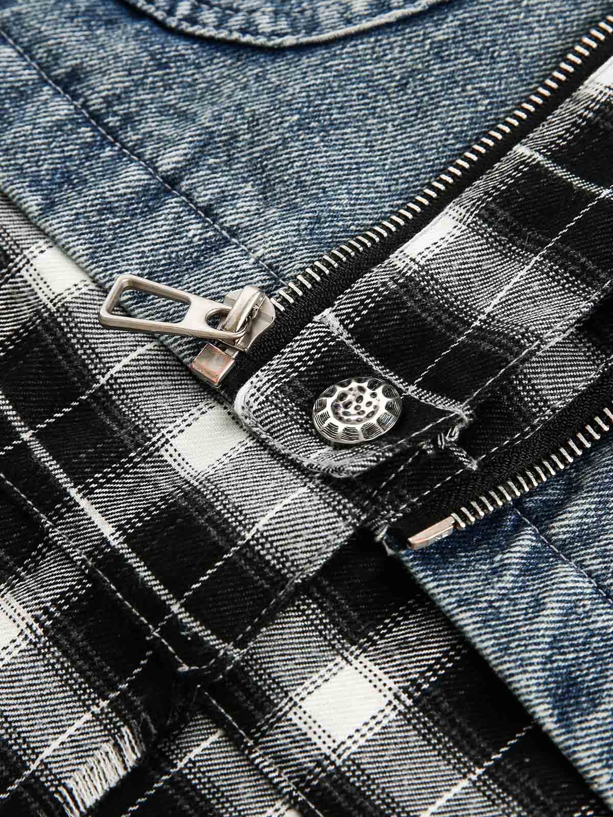 Washed Distressed Patchwork Faux Two-Piece Denim Jacket